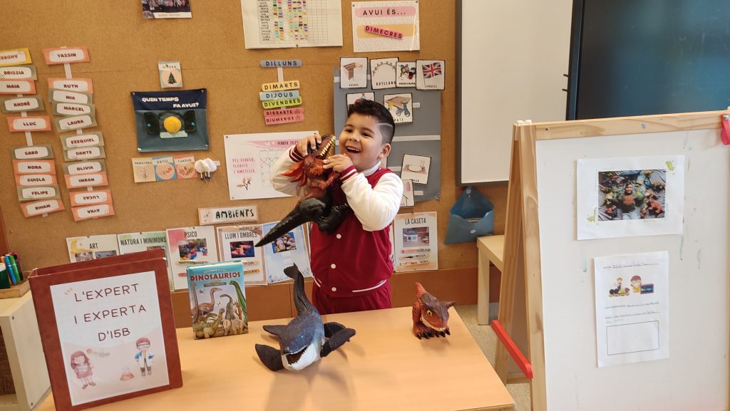 Aquesta setmana hem tingut un expert en Dinosaures. El Gabo ens ha explicat com són, com es diuen i algunes diferències. A casa té moooolts dinosaures de diferents mides i vam poder jugar amb 3 exemples que va portar a la classe perquè poguèssim jugar.