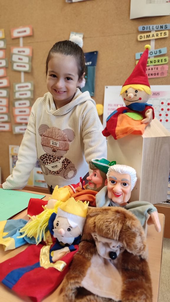 Aquesta setmana a la classe de la Lluna hem tingut una experta en titelles. A la Laura li agraden molt i li encanta jugar a fer teatre de titelles a casa. Ens ha explicat els diferents  tipus de titelles que coneix: de pal, fetes amb mitjons, de fil, els muppets… Fins i tot n’ha portat algunes perque les poguem veure d’aprop.