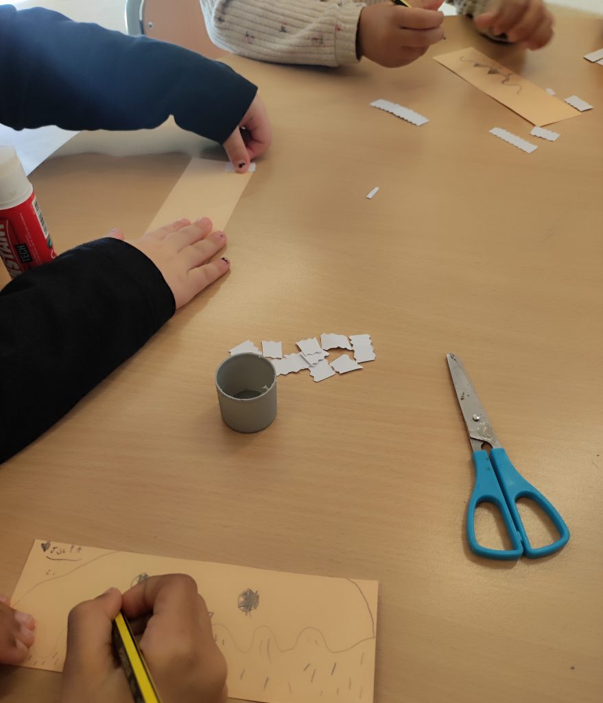 Ens ha explicat i ensenyat moltes de les manualitats que ha fet fent servir materials que té per casa. Li agrada molt dibuixar, pintar amb colors i enganxar coses per complementar els seus dibuixos o manualitats.