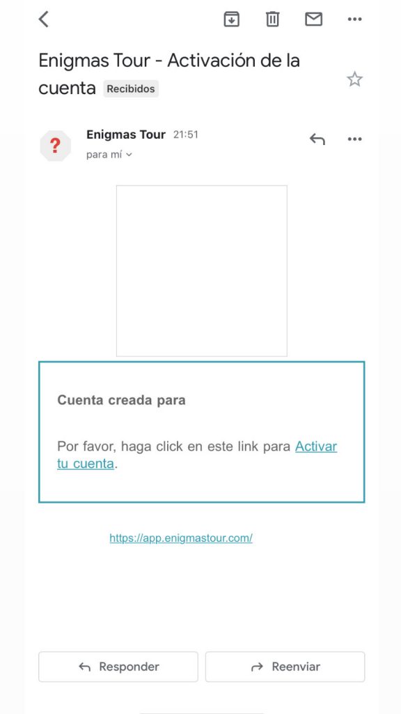 Quan s’han omplert totes aquestes dades vol dir que la persona s’ha registrat correctament i, per tant, s’envia un mail al correu escrit anteriorement, amb un link amb el que poder accedir a l’aplicació per realitzar l’escape.