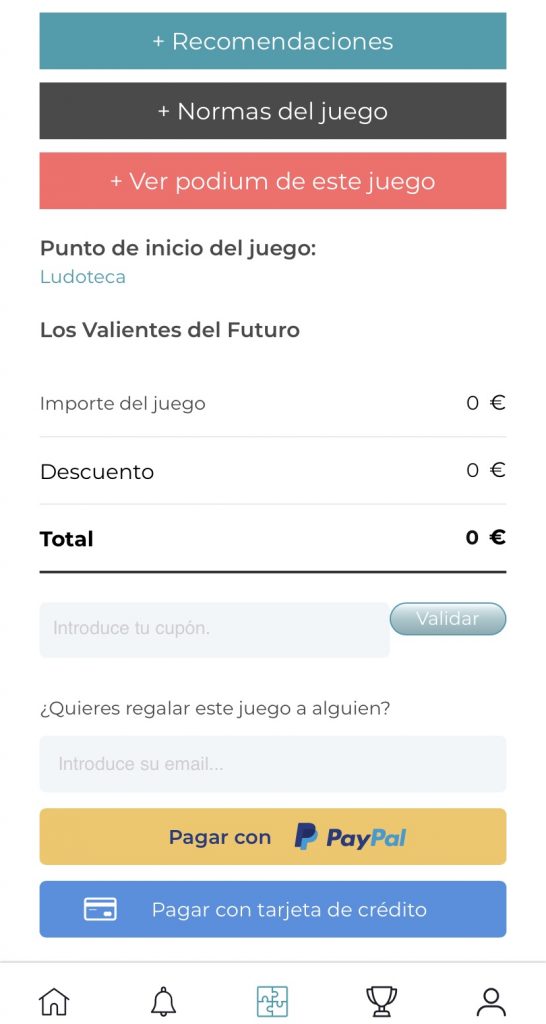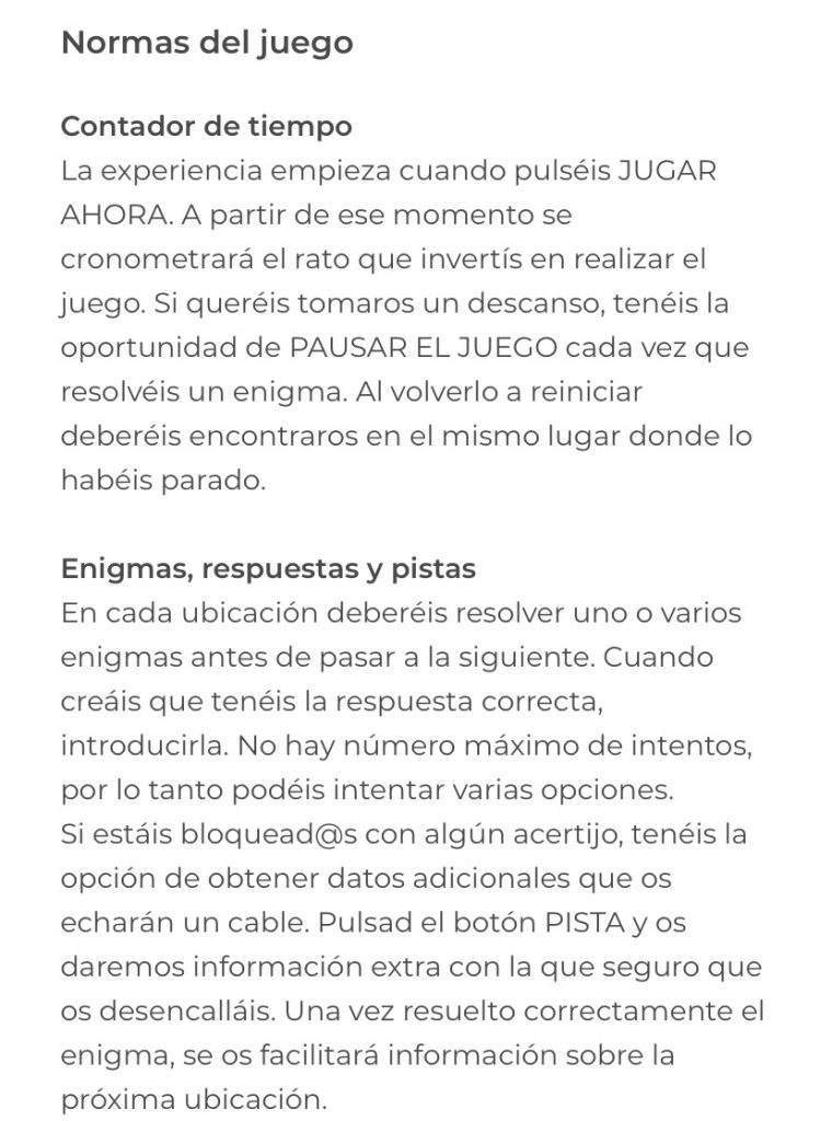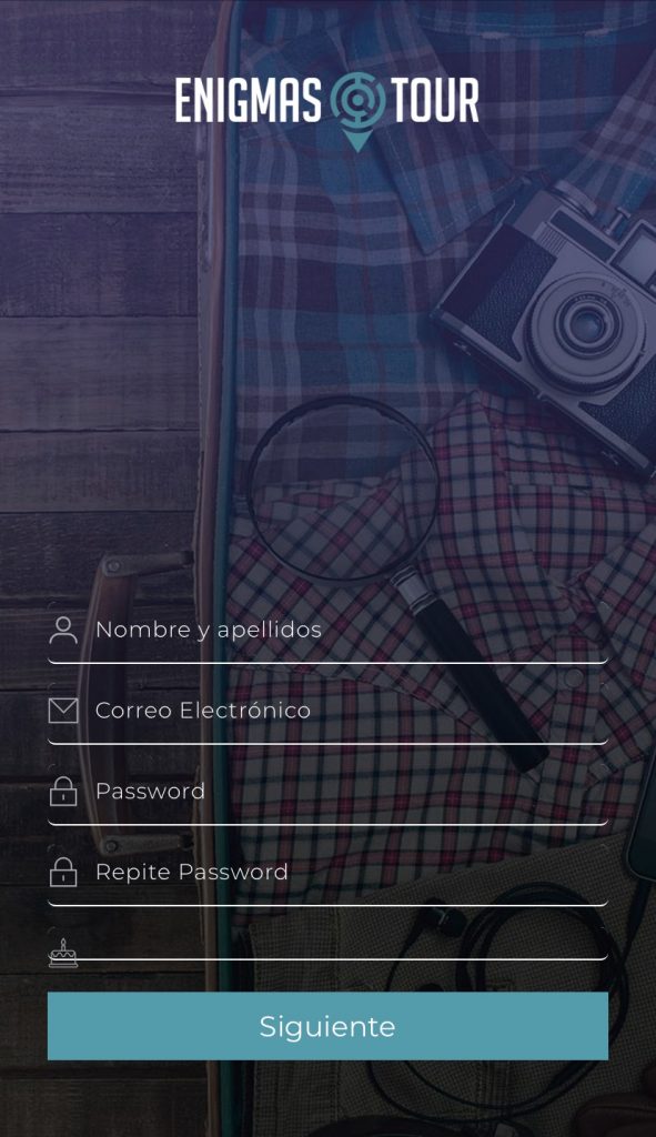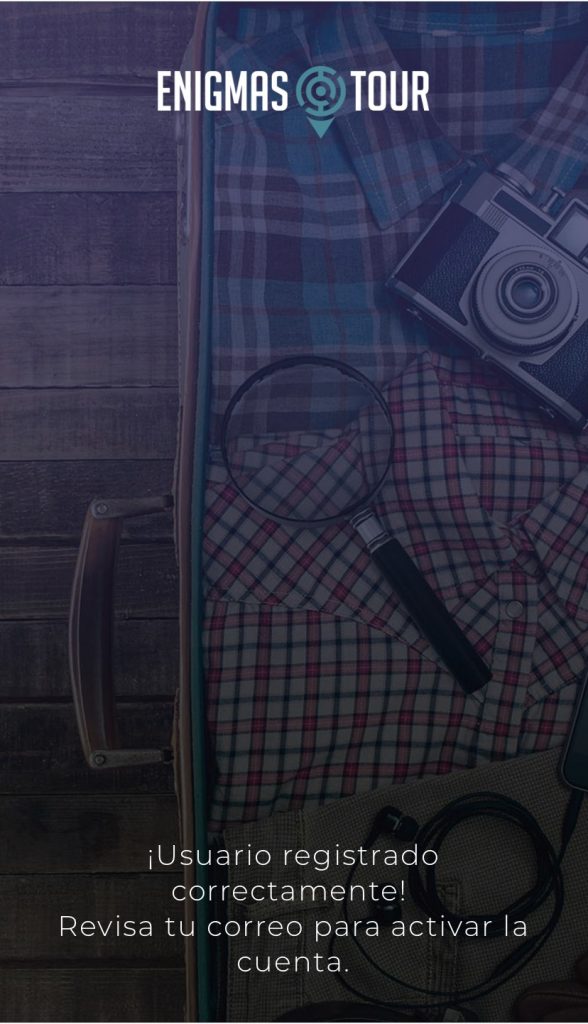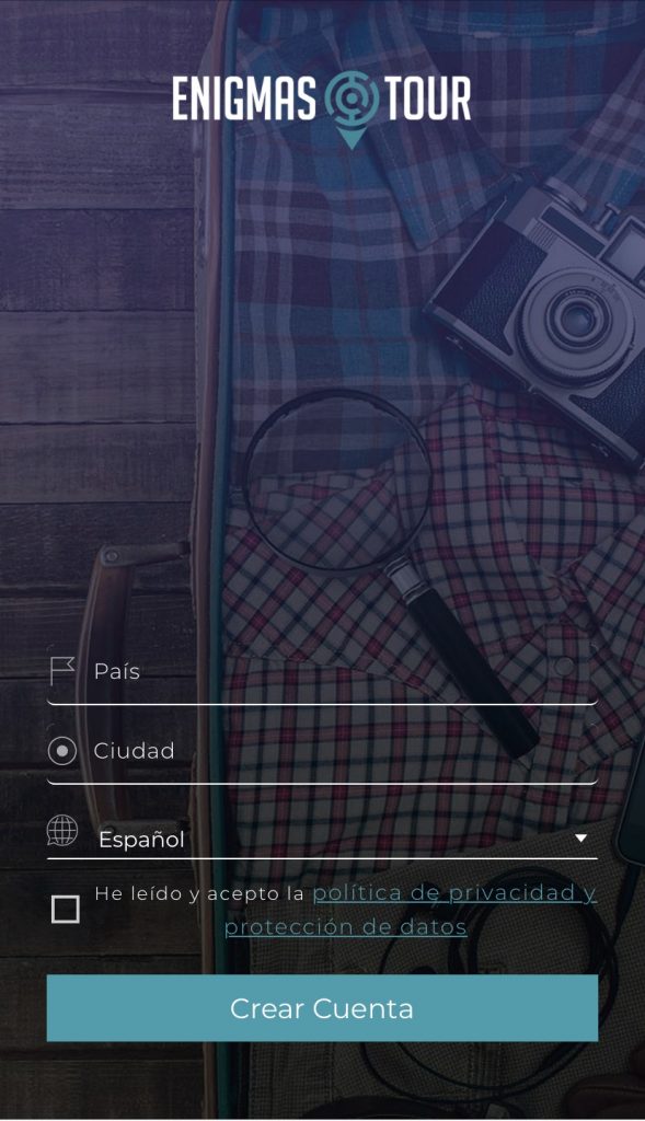 La persona que vol jugar primer s’ha de registrar, pulsant Regístrate. S’ha d’identificar posant el nom, el mail, la contrasenya, la data de naixement i el país i la ciutat on viu. També ha d’acceptar la política de privacitat i protecció de dades. L’únic idioma amb el que es pot fer és en castellà, tot i que els altres Enigmas Tour tenen l’opció de fer-se en anglès.