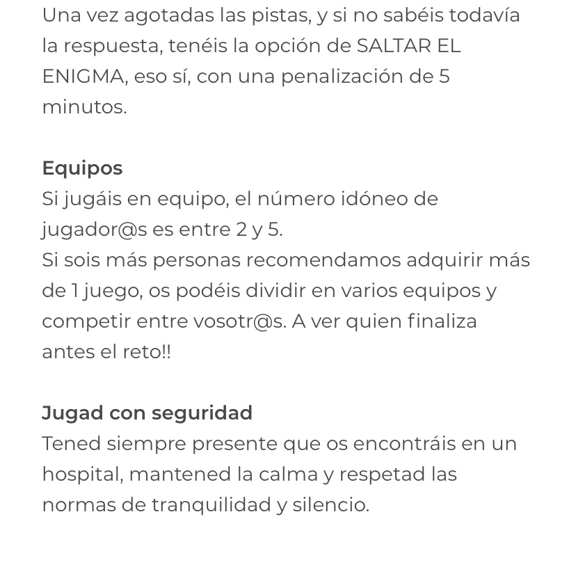 Alhora, ha estat una activitat complexa que ha requerit la inversió de molt temps per pensar la història i crear el nostre propi apartat a l’aplicació, on tot funcionés i no hi hagués cap error. Aquests són un dels motius pels que encara no l’hem pogut posar en pràctica. Ens hagués agradat molt poder-vos explicar el resultat d’aquest escape a l’hospital, però el que tenim clar és que el posarem en pràctica, aviat, quan la nostra coordinadora del voluntariat ens ho permeti. Hem arribat fins aquí per a demostrar el que hem estat capaçes de fer, així que, qui sap, potser en uns mesos tornem a aparèixer en aquest bloc, per tancar aquesta experiència i activitat.