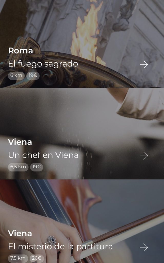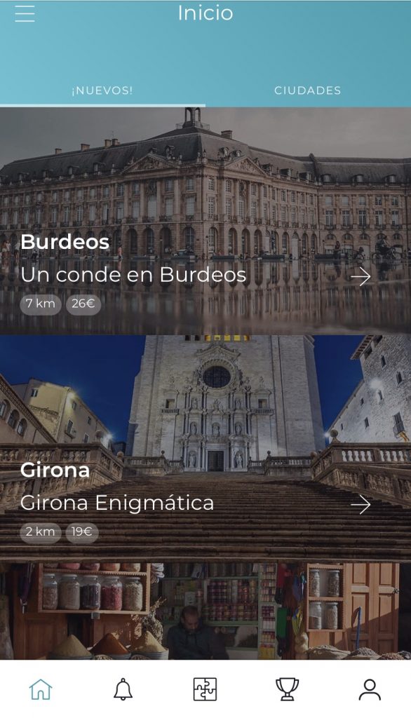 Si es clica el link, s’arriba a la pàgina principal de l’aplicació Enigmas Tour, on apareixen tots els que tenen: a Burdeos, Girona, Marrakeck, Roma i Viena.