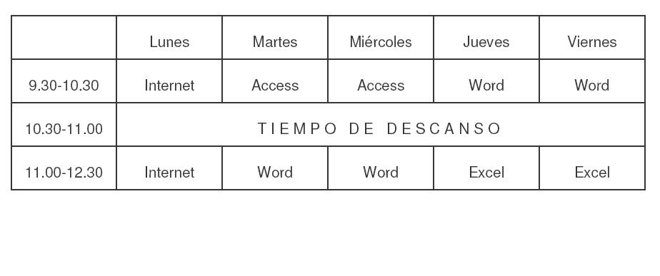 A les altres columnes l’alineació ha de ser centrada, amb una lletra tipus Comic Sans MS tamany 12.