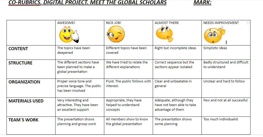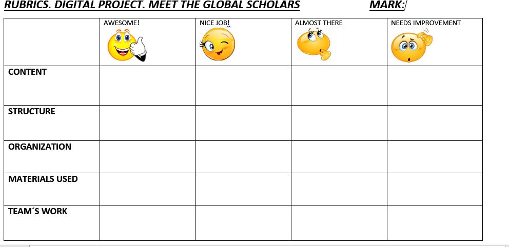 UNIT 1. Co-rubric. Digital Project. Meet the Global scholars