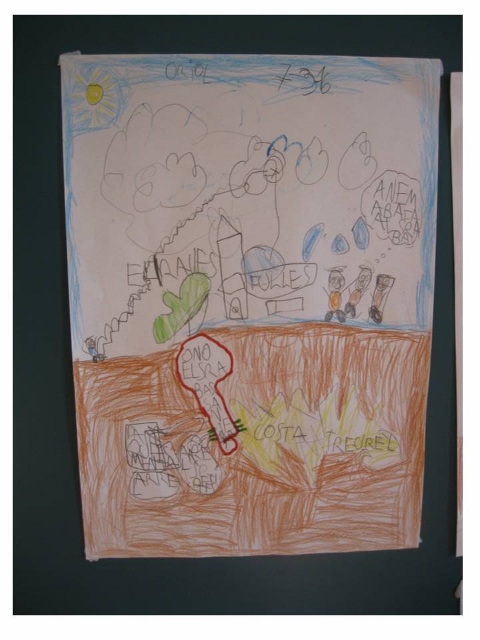 Després de parlar sobre el que vam fer i com ho havien explicat a casa, cada alumne explica tot el que va aprendre en un full A3. Es tracta d’organitzar i exposar la informació de la manera en que cadascú cregui més convenient, atenent al seu nivell i a la manera en que se’ls hi dóna millor (escrit, esquemes, dibuixos…).