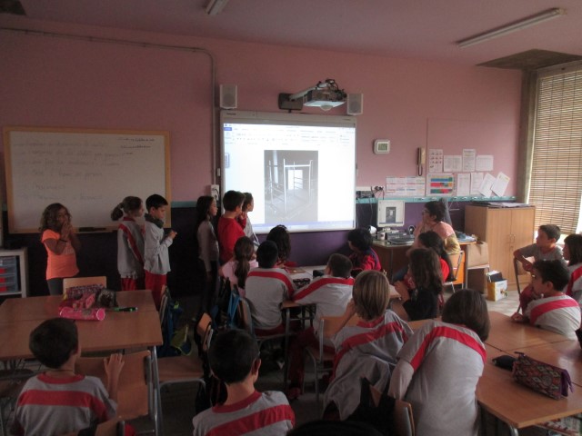 Cada grup va començar a investigar el seu tema i aquí van començar els problemes. Els de material van veure que no tenien prou informació per decidir. Els de la ubicació ja voltaven per Barcelona buscant el carrer Fontanella i se’n van adonar que havien perdut el temps, que no havien donat les ordres precises. Els de l’estructura no tenien prou estris per fer-se una idea de quines eren les dimensions d’aquella estructura (intervenien el volum i mesures de més d’un metre). Els únics que tiraven eren els que treballaven sobre la llum negra. Ens va sorprendre però cada grup va anar buscant les estratègies per sortir-se’n. Les mestres evidentment vam fer de guies, però no solucionant la situació sinó generant més preguntes perquè d’aquesta manera poguessin veure les errades i quines eren les modificacions que calia fer.