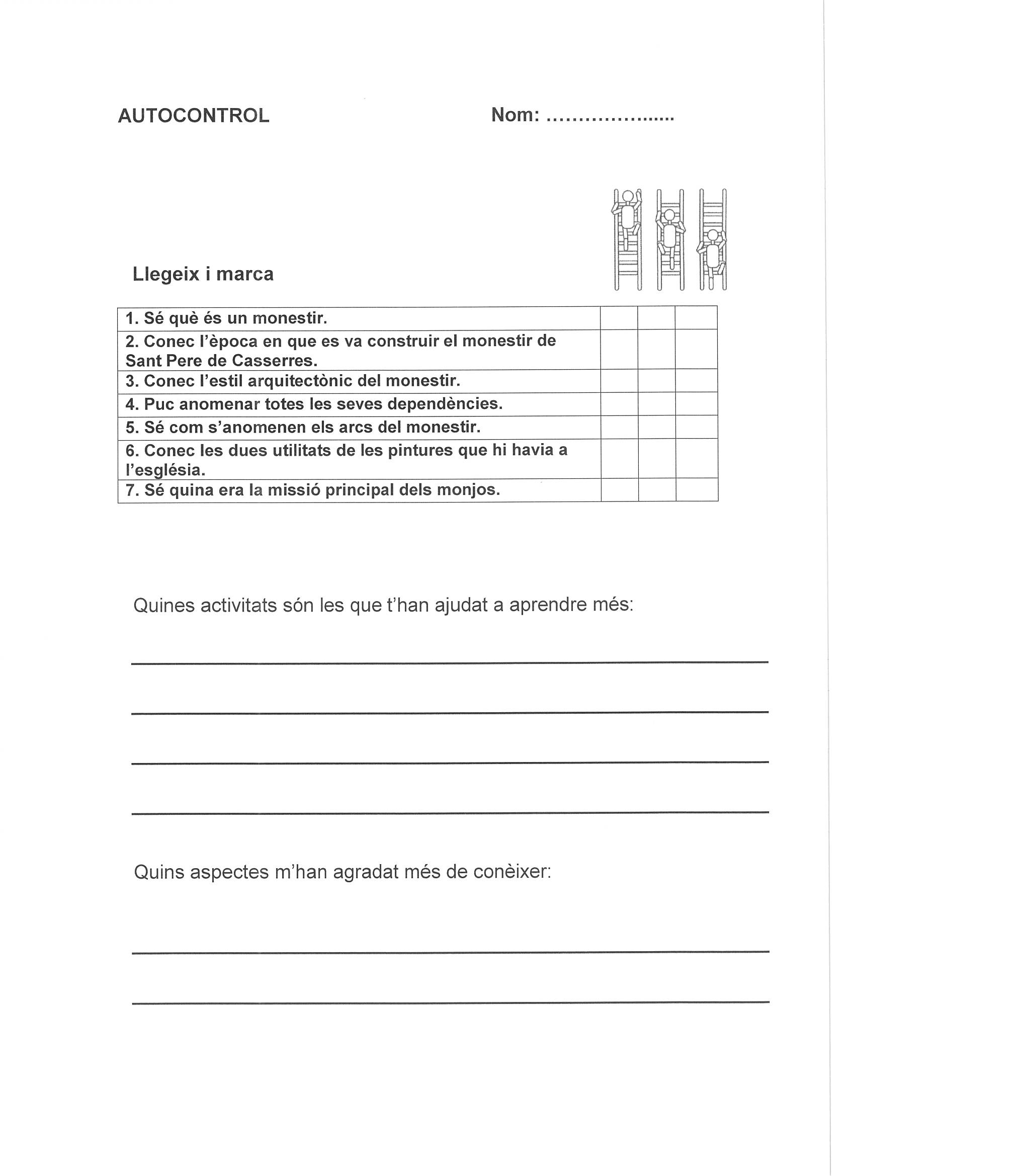 Les sortides que fem al monestir ens serveixen per obtenir més informació i relacionar-la amb els aprenentatges ja adquirits i així anar construint coneixement. Els alumnes documenten el procés utilitzant les tecnologies i creant les evidències a la seva carpeta d’aprenentatge o reflexionant en el seu diari d’experiències.