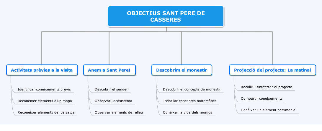 A través de la descoberta del projecte, els alumnes per grups cooperatius, fan una pluja d’idees de coses que es volen treballar. Després tot el grup classe, amb el guiatge de la tutora, s’arriben als objectius que volem assolir en el nostre projecte.
