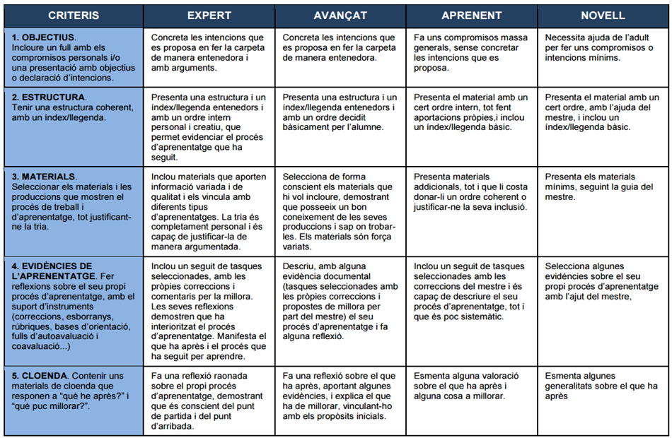 Format de la carpeta: llibreta, fulls subjectats amb altres sistemes, etc. Es valorarà la cura i originalitat en la presentació.