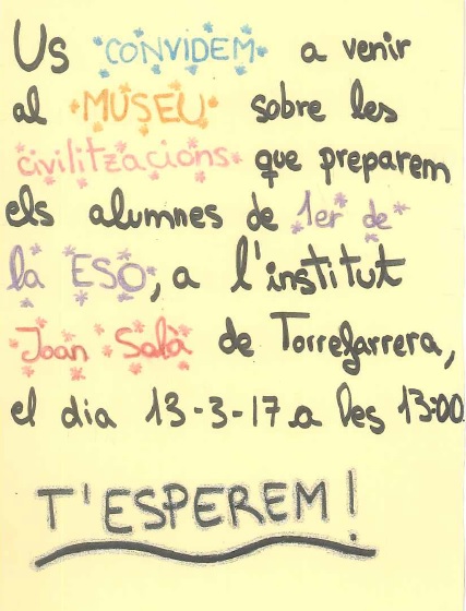 • Fase de mostra: 13 i 14 de març de 2017. 6 hores en total. Dues visites guiades per alumnes de cicle superior de dues escoles de primària adscrites i una, per a les famílies.