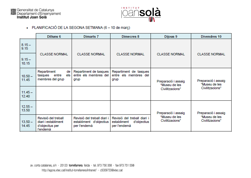 • Fase d’elaboració: del 27 de febrer al 10 de març de 2017. 4 hores diàries.