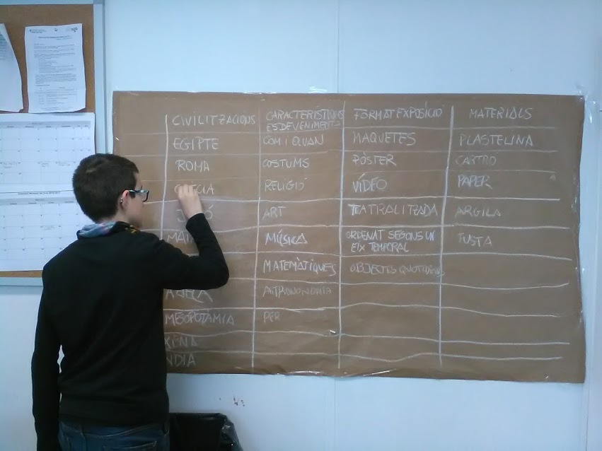 En un primer moment se’ls presentà el context i s’obrí una pluja d’idees per concretar-lo. Sorgiren preguntes com: què hauria de contenir i mostrar aquest museu? De quines maneres podem presentar la informació al nostre museu? quins aspectes cal que hi siguin presents? amb quins materials podem presentar la informació?….
