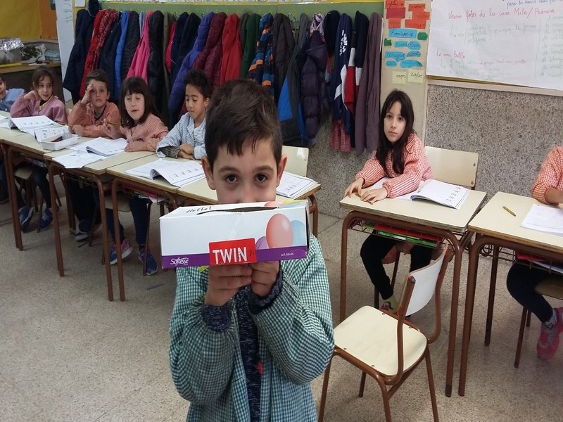 A l’aula s’acaben els mocadors de paper i en el moment que anàvem a llençar la caixa un nen pregunta: Me la puc endur a casa ? ; i li pregunto: Per què la vols?; i la seva resposta és: Per fer un timbal.