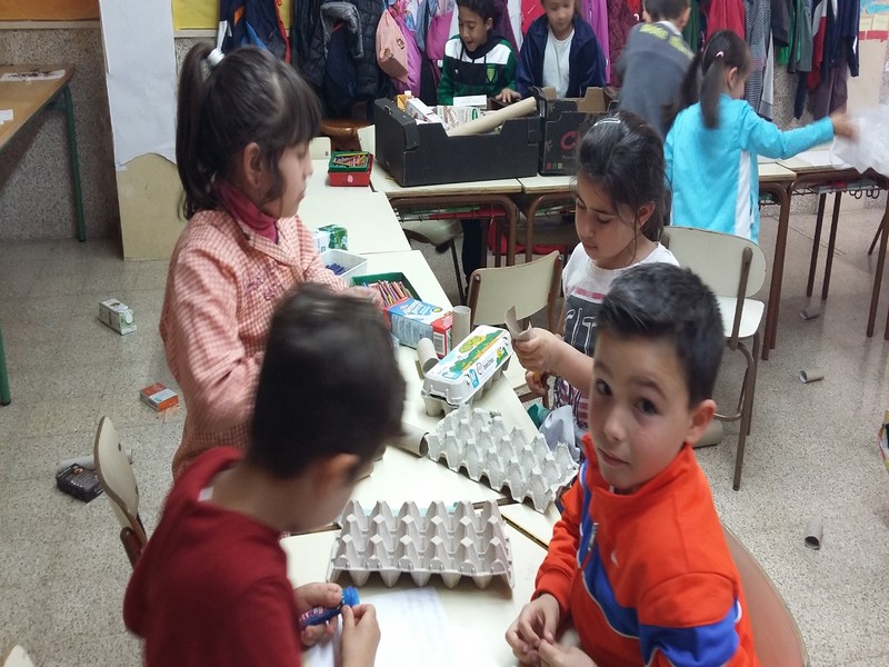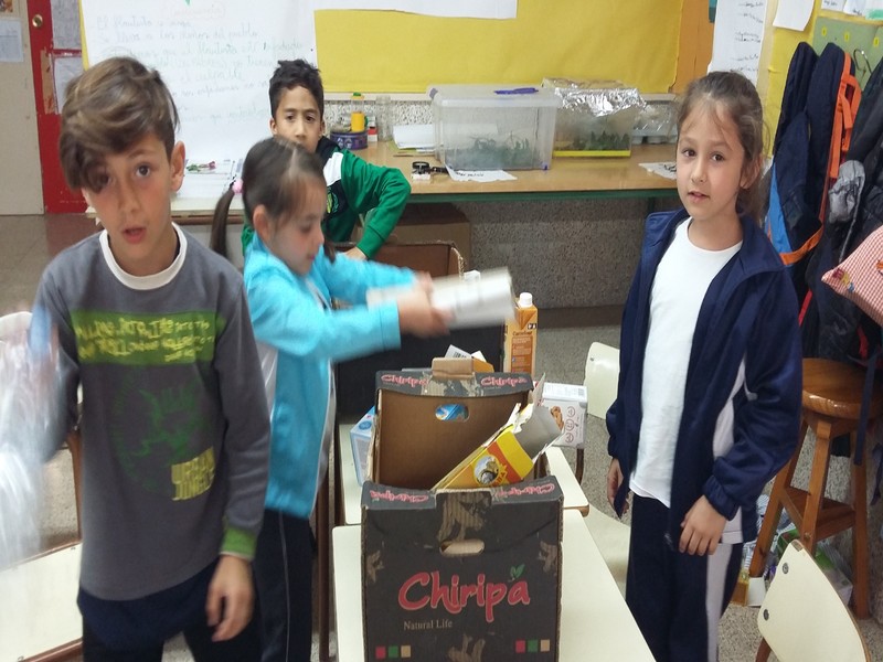 La seva participació i interès és molt gran i es va contagiant entre ells. En un racó de la classe es van emmagatzemant tetrabriks de llet, caixes de cartró, pots diversos, ……