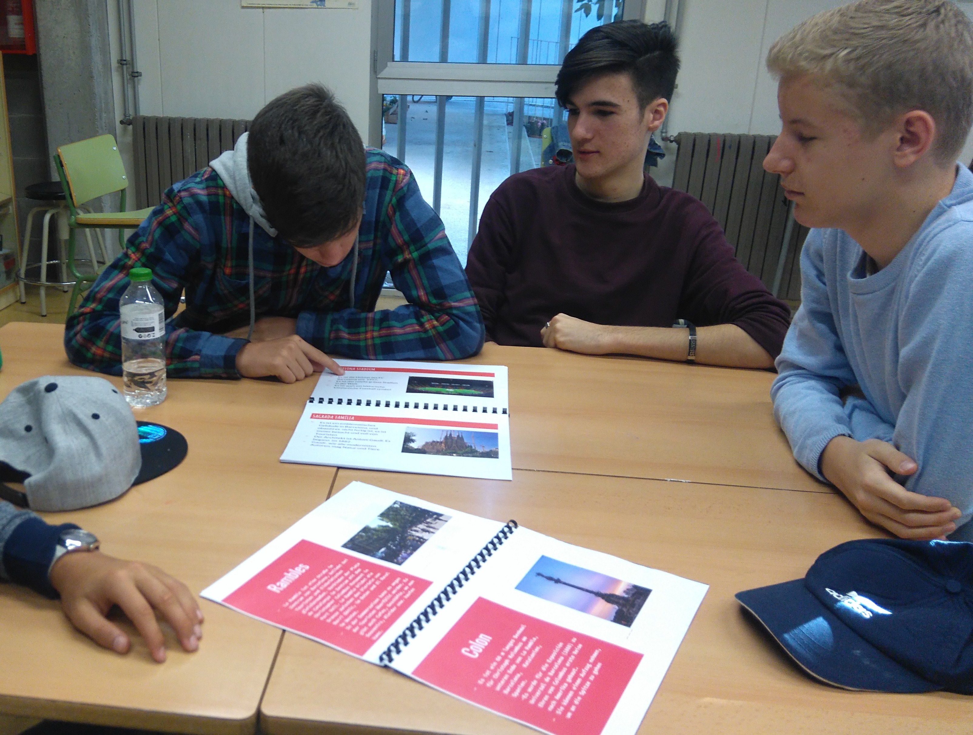 Un cop vam pactar amb l’alumnat quins llocs turístics mostrarien en els seus tríptics, se’ls va oferir un nou repte. Es tractava de presentar  oralment aquest tríptic als companys de classe i posteriorment in situ als polonesos. Calia experimentar els avantatges i inconvenients que representava fer de guia turístic a Barcelona.