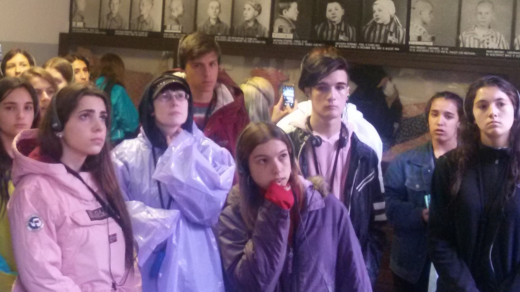 En aquesta imatge les cares dels nostres alumnes parlen per sí soles, amb fotos de nens presoners al fons de la imatge.