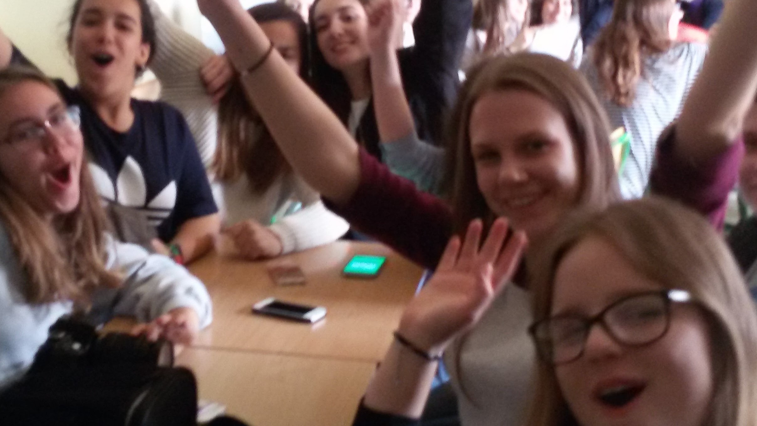 Dia 15. El dia va començar amb una competició de Kahoot. A la foto podeu veure l’alegria de l’equip guanyador.