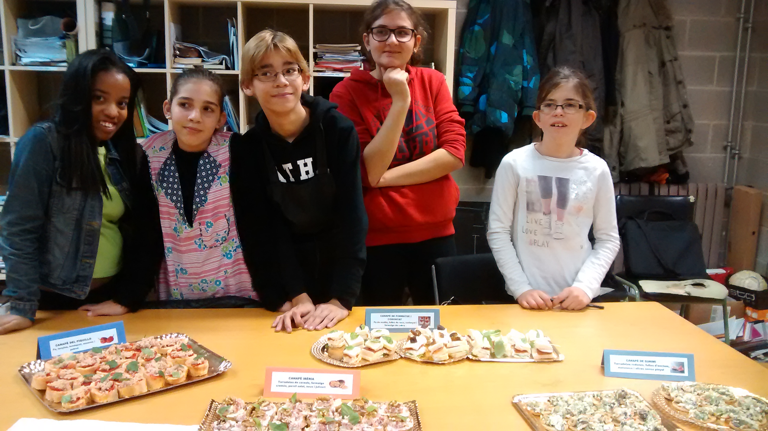 Aquí us deixem unes imatges del “Projecte Canapé”, en el que vam dissenyar i preparar una sèrie de canapés per convidar als professors i professores a un pica-pica abans de les festes de Nadal.  Aquest projecte ens ha facilitat explorar l’orgull, la satisfacció,  el companyerisme i l’alegria que porta la feina ben feta.  I ens ha inspirat el nom de nostre bloc a la Xarxa: CUINANT LES EMOCIONS!!!