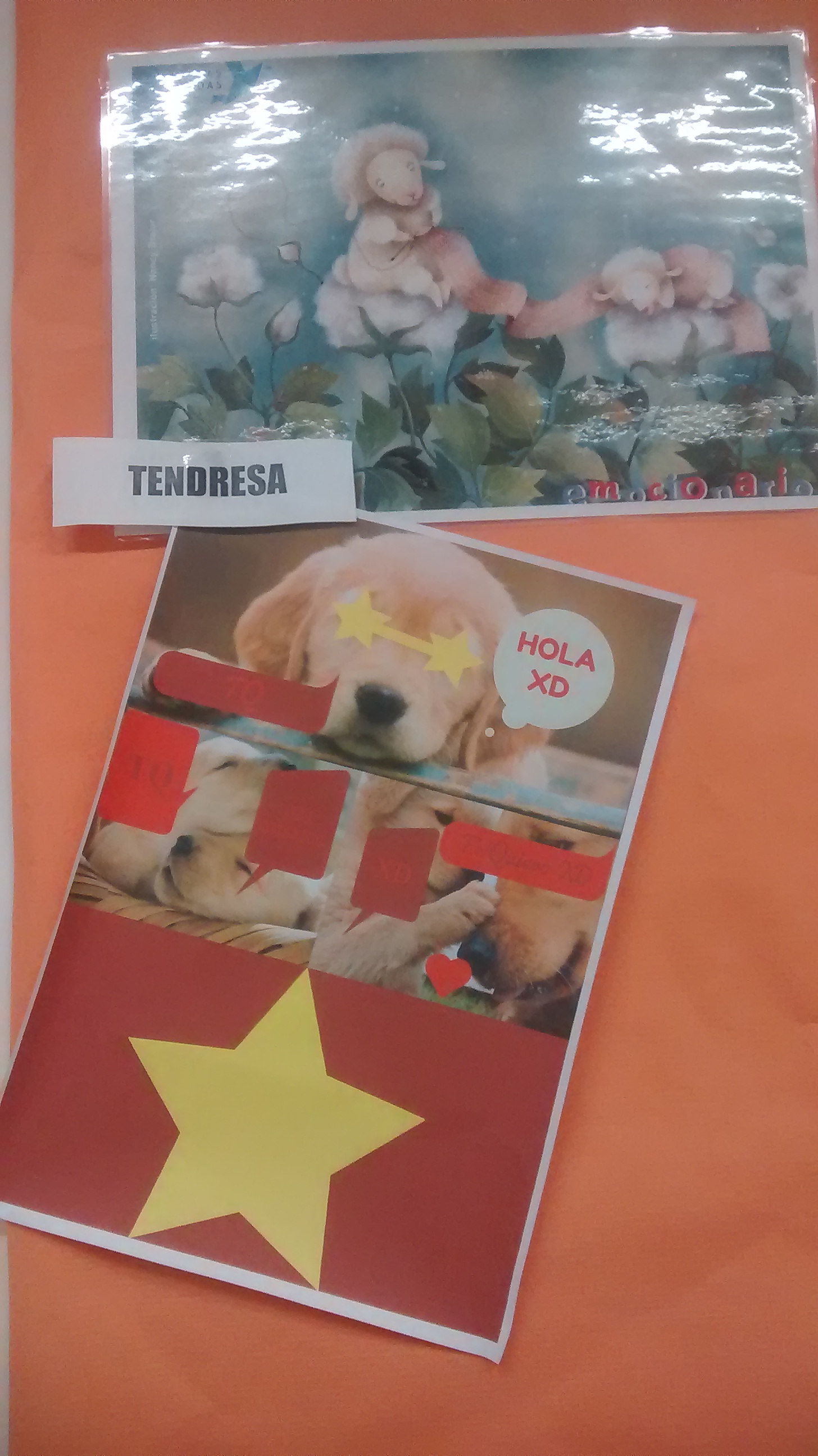 Us deixem la interpretació de la tendresa que ha fet un alumne. La primera de dalt correspon a la imatge de l’emocionari i la segona a la creació amb el Canva.