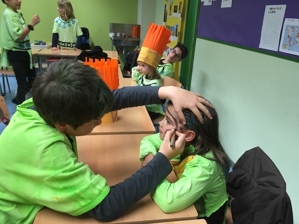 Primerament, quan el claustre va decidir el tema del Carnaval es va separar en grups per confeccionar les disfresses, l’organització de la festa, les músiques,… Un dels grups es va dedicar a preparar uns treballs perquè les tutores dels diferents cursos els poguessin aprofitar per treballar les civilitzacions de les que ens disfressàvem.