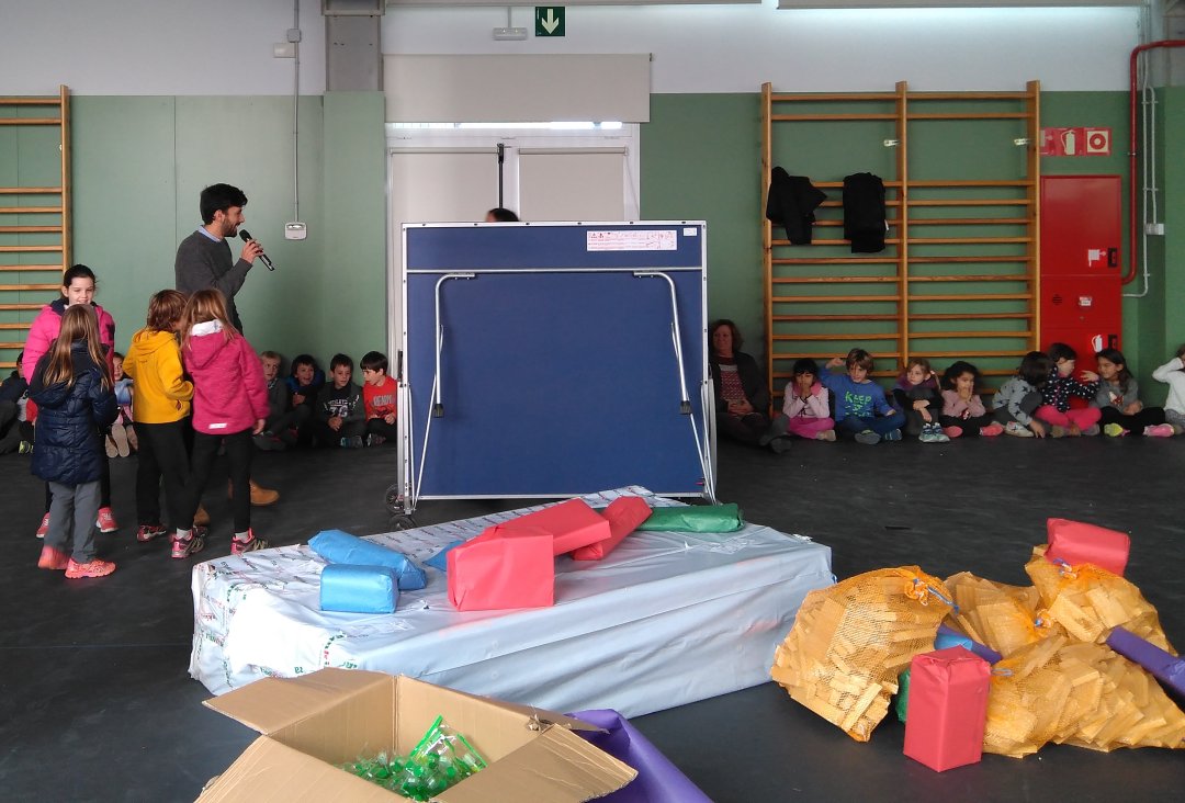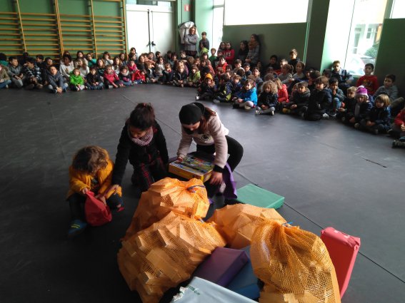 Fa aproximadament tres cursos que ens proposem desenvolupar activitats al voltant d’un tema que ens identifiqui com escola i que ens permeti treballar des de p3 a 6è i sobretot col·laborar i cooperar plegats. No només entre els alumnes de diferents cursos i edats, també tots i totes els adults de l’escola com a comunitat educativa.
