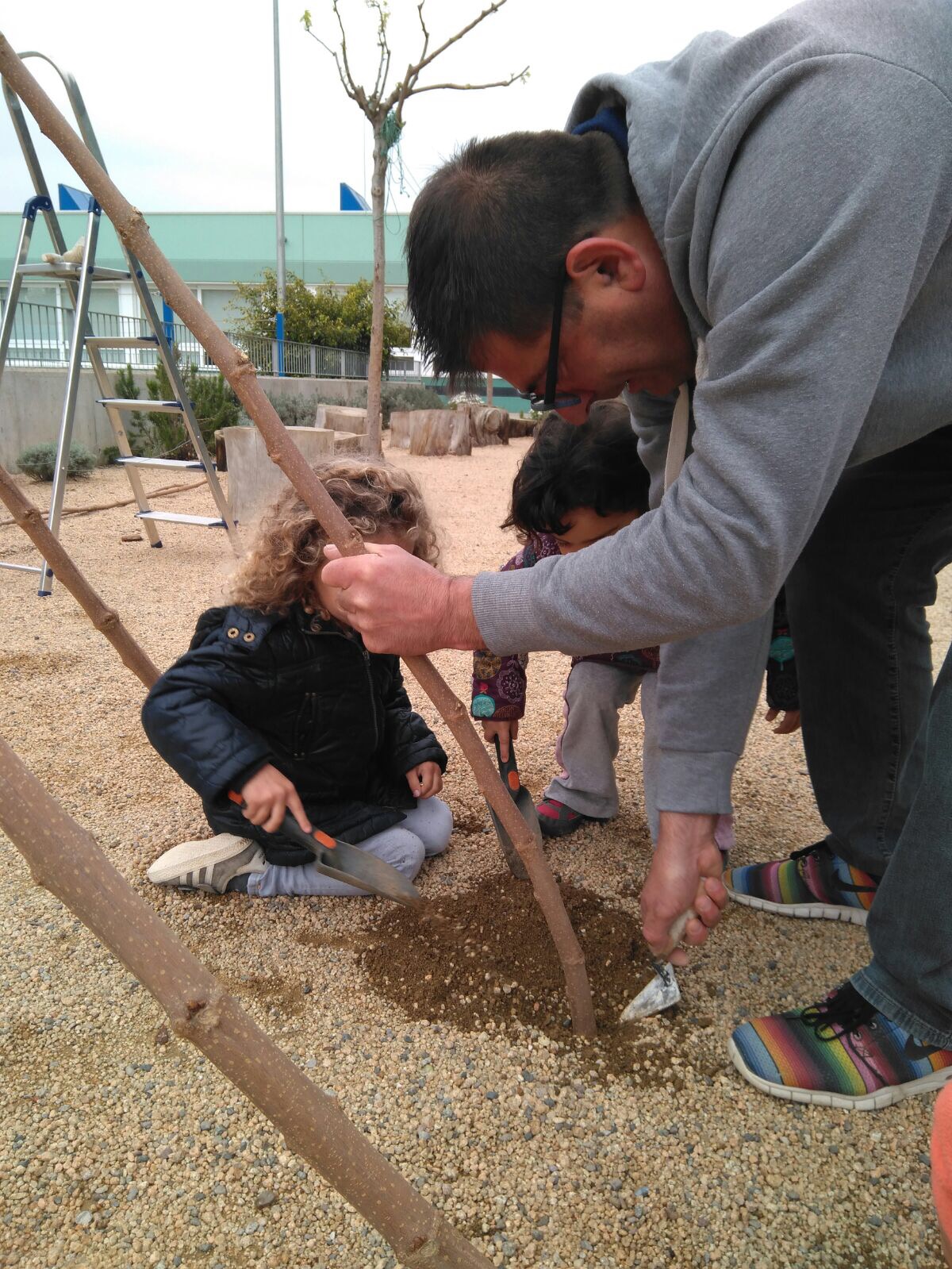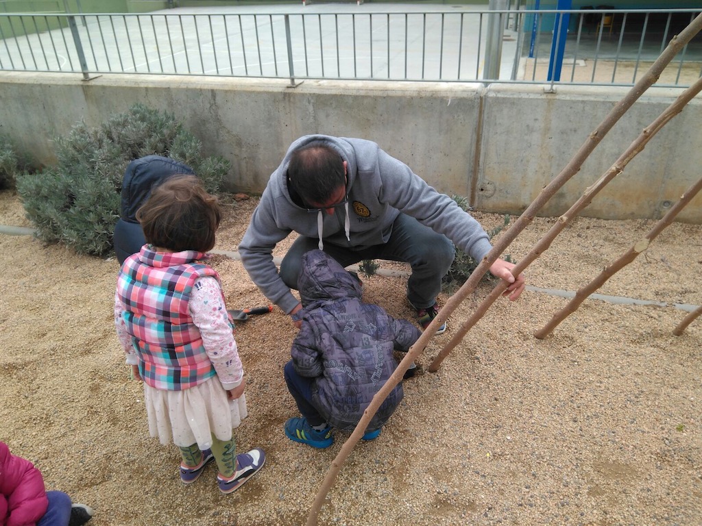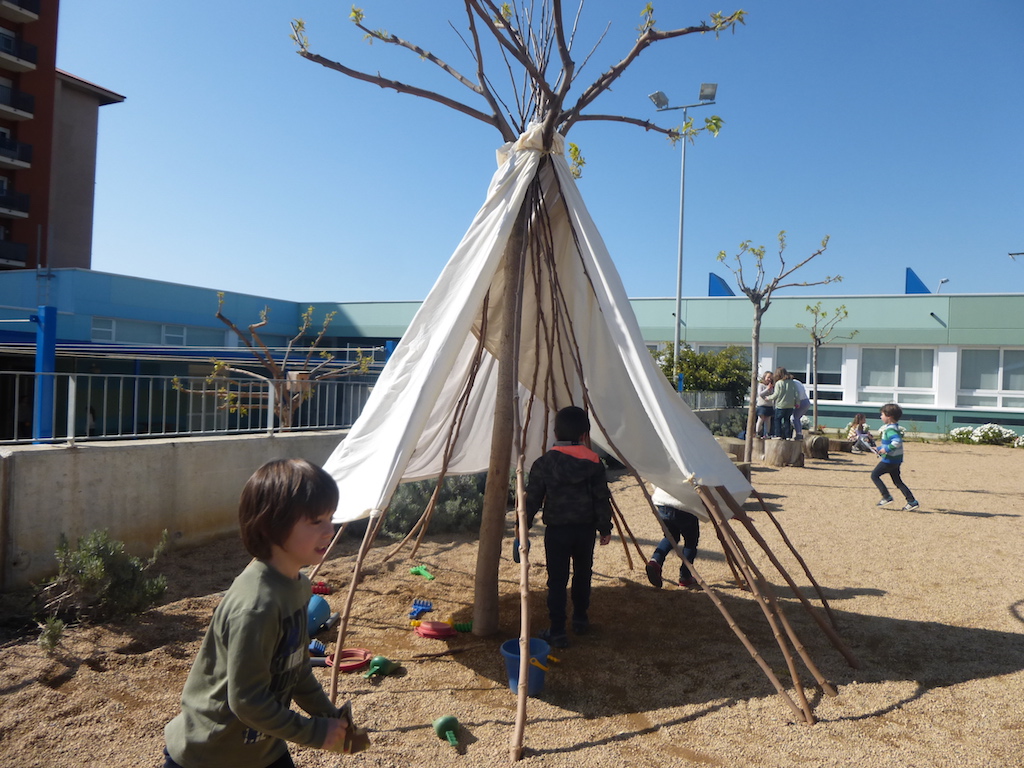 Ens agrada fer partícips al nens i a les nenes de noves incorporacions i de la creació d’aquests espais i per aquest motiu l’alumnat de p3 amb l’ajuda del conserge, va participar en la construcció d’una cabana tipus “tipi”.