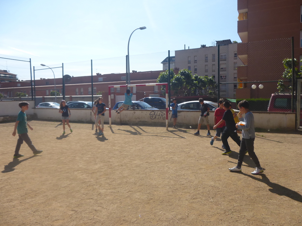 Fa un temps que les mestres de l’escola, per qüestions d’espia i convivència, van decidir prescindir de les pilotes a l’hora de l’esbarjo. Aquesta decisió es va prendre de forma provisional amb la voluntat de trobar una solució que garantís un espai de pati tranquil i on tothom pogués trobar el seu espaiP1030596.