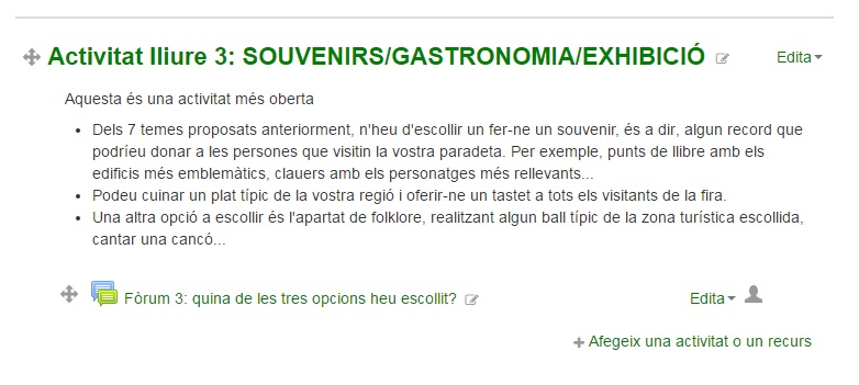 Durant: podran decidir quines 3 activitats lliures faran (a banda de les 2 comunes)