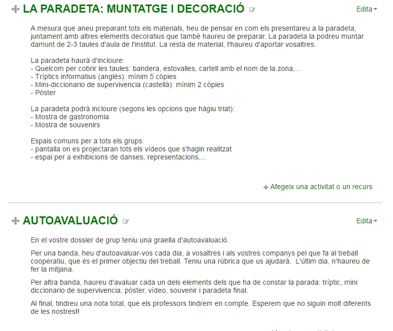 El curs de Moodle del projecte va prenent forma, i això vol dir que mica en mica tot es va definint!