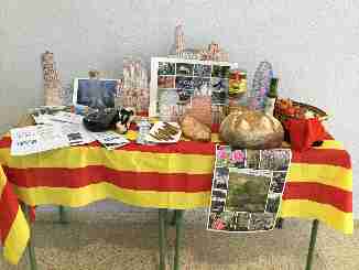 El dia abans de començar el crèdit, hem muntat la paradeta de Catalunya. Tots els alumnes han passat a veure-la i els professors els fem adonar de tot el que conté.