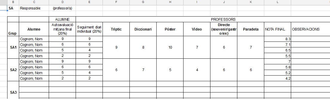 • Graella final pel professor en un drive