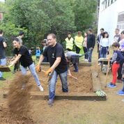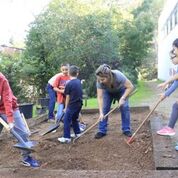 A la JORNADA DE TARDOR, de l´escola, els pares i mares voluntaris comencen a fer el forat .