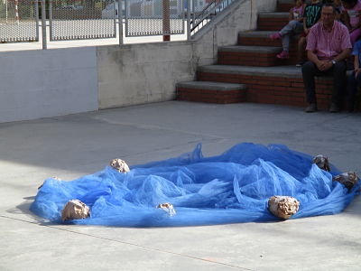 Per a motivar van començar a fer els possibles animals i la forma que podria tenir la nova bassa de l’escola, per tant vam aprofitar per a reproduir-la el dia de la inauguració del curs, juntament amb els animalets, la forma que consideràvem més adient i com crèiem que quedaria la nova bassa de l’escola.
