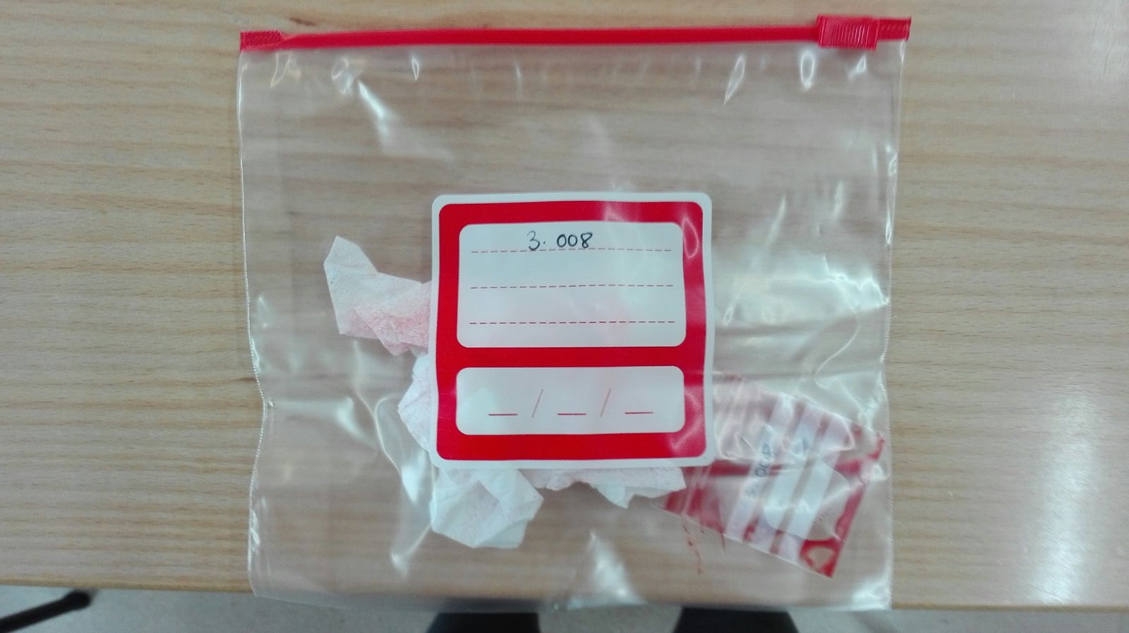 Amb les proves se’ls va facilitar una bossa que contenia una bosseta amb liquid vermell, sang?, i un mocador tacat que s’havia trobat en l’escena.