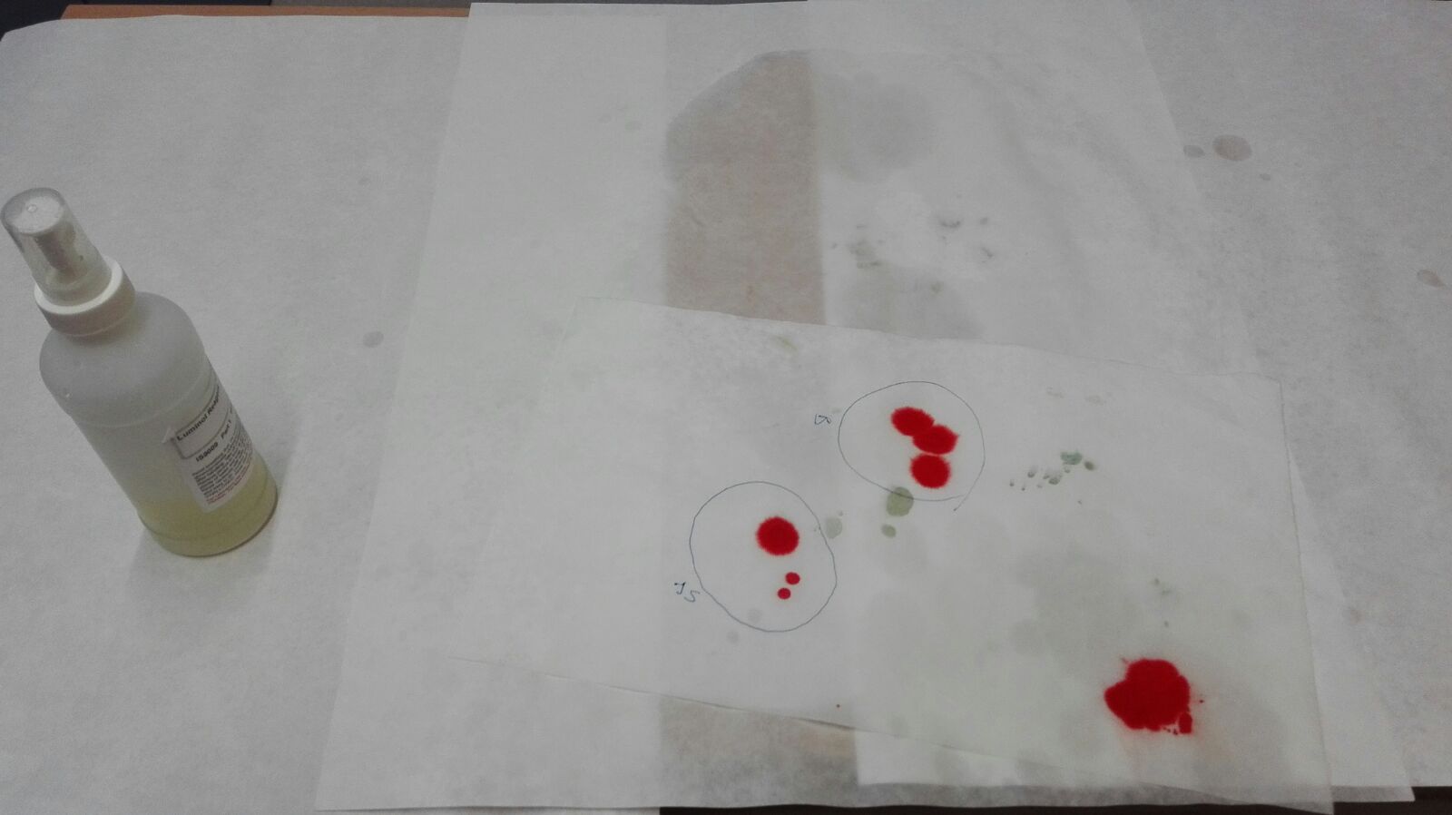 El mocador tacat es va sotmetre al reactiu luminol, posant el laboratori a les fosques, els grups passaven per una taula situada a l’entrada, la part més fosca del laboratori.