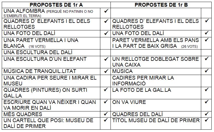 Primer cada classe va recollir el que volia que hi hagués en el museu i després es va fer una trobada conjunta per reafirmar les coincidències i valorar si s’incloïen les propostes de l’altre classe.