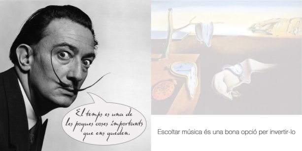 Paral·lelament des de l’àrea de música s’estaven treballant la reproducció de cèl·lules rítmiques i els diferents estils musicals que van servir als alumnes partint de les seves pròpies propostes musicals per viatjar a través de les diferents emocions i acabar  realitzat un CD de peces musicals que mostren les seves pròpies emocions. La caràtula del qual és una imatge de cada alumne utilitzat l’anamorfisme característic de Dalí.
