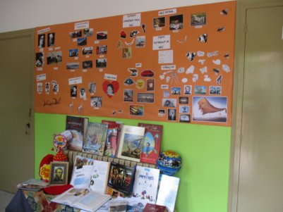 Arran d’aquest, els alumnes van anar aportant informació, llibres, fotografies, objectes… que ens va servir per crear un petit racó a l’entrada de l’escola. Al mateix temps, vàrem posar un paper a la paret de l’entrada amb la firma de Dalí. Un paper que s’ha anat omplint a mesura que avançàvem en el projecte i que s’ha convertit en un gran mural on queda reflectit tot el descobert i treballat sobre Dalí.
