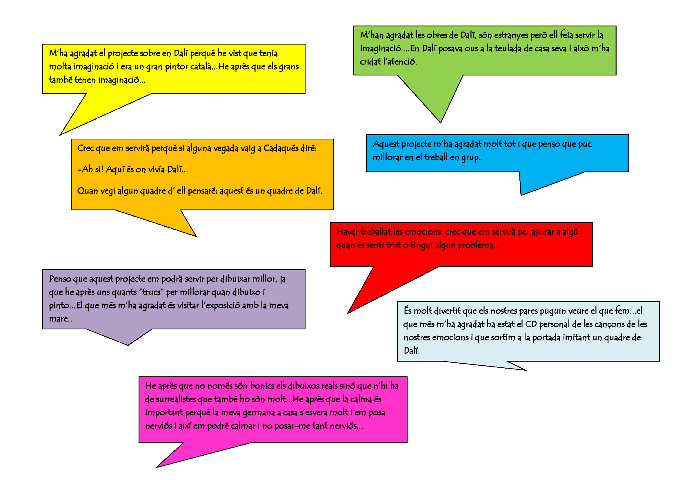EMOCIONARIA data d’avui, podem dir que els alumnes tenen un ampli coneixement de la vida de Dalí, de la importància d’entendre la seva vida ( família, amics, context, simbolismes…) i els seus somnis per interpretar i comprendre millor la seva obra.