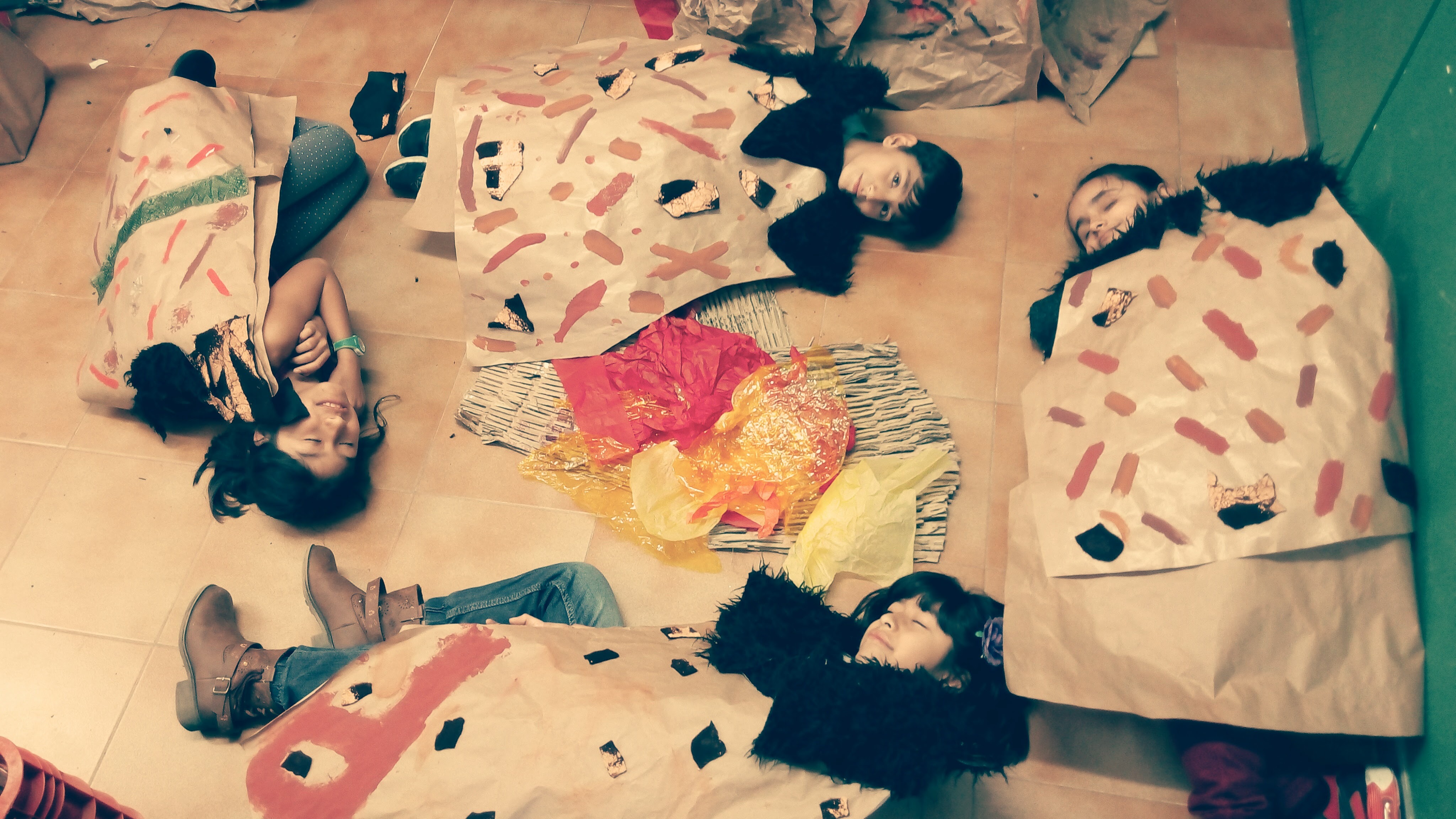 • Els productes de la recreació plàstica: cova prehistòrica, pintures rupestres, mural línia del temps, roba de l’època i eines que utilitzaven. Aquestes tasques les van realitzar per grups mitjançant treball cooperatiu, on cada alumne tenia assignat el seu rol.