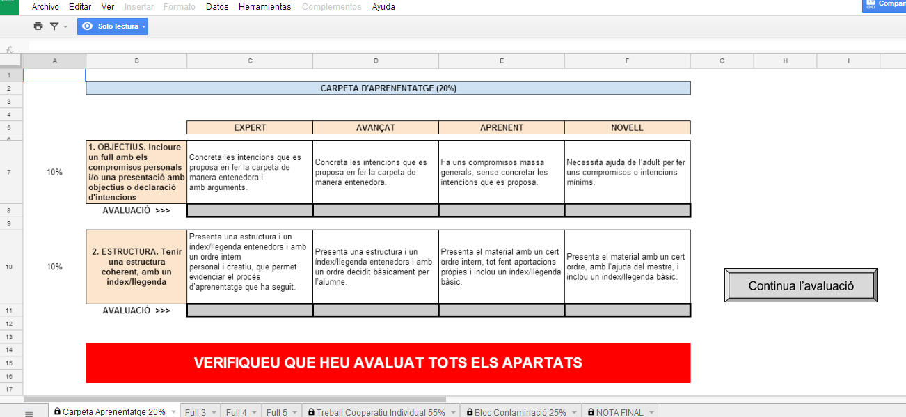 Un cop compartida la informació, en grup, van haver de decidir si allò que havien aprés era rellevant per al bloc que havien escollit, o si era informació que volien que sortís en les carpetes d’aprenentatge individuals.