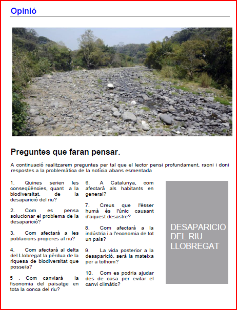El dia 9 de juny els alumnes de 2n de l’ESO van començar a treballar en el projecte sobre el riu Llobregat. La primera cosa que van haver de fer va ser debatre en grup quin bloc sobre el riu volien treballar. Van haver d’arribar a un consens, i els vam donar un temps limitat per a que fessin la selecció el més ràpid possible.