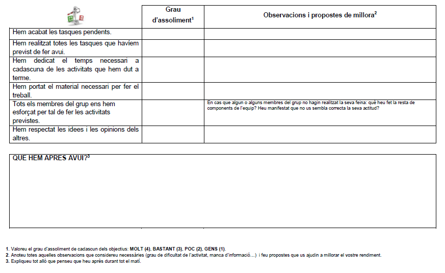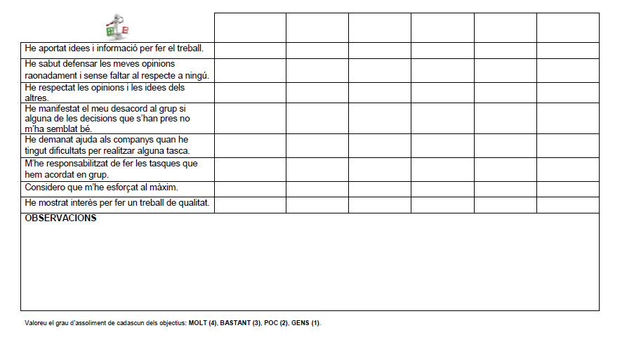 també s’ha realitzat una avaluació continua del funcionament del grup cooperatiu i de la gestió dels aprenentatges.