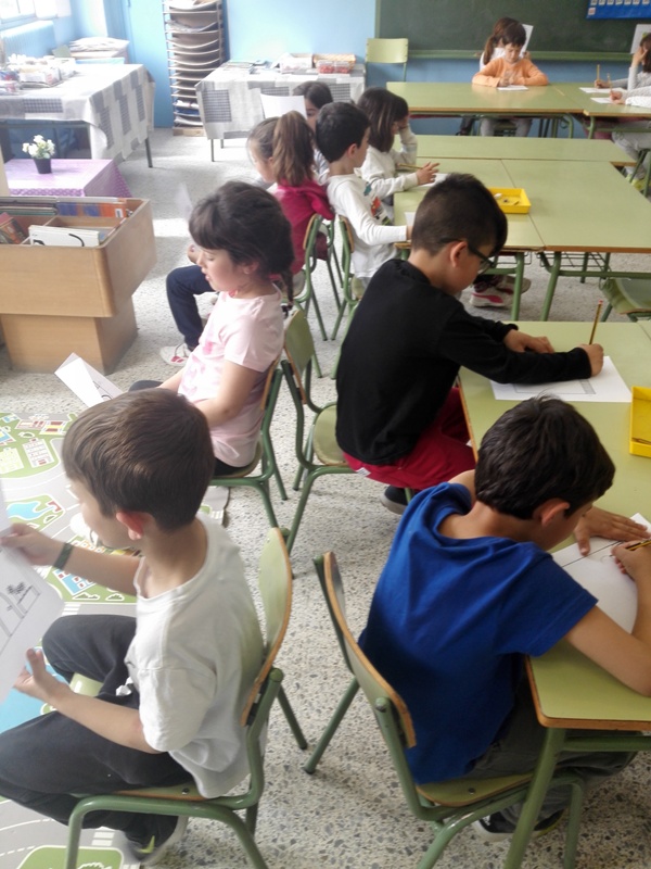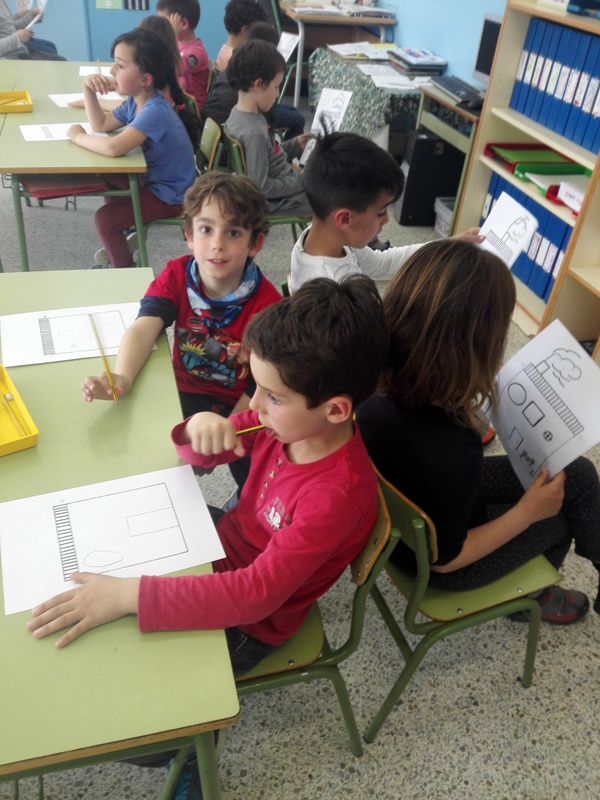 Saber i entendre que els arquitectes treballen per encàrrec ens ajudarà a introduir l’última activitat de la setmana que serà dibuixar per encàrrec d’un company una casa seguint les instruccions que ens dóna. Ens posarem esquena amb esquena i començarem a dictar instruccions sobre la casa que volem, a veure si som capaços de plasmar i entendre el que vol el nostre client. Així treballarem la comprensió oral i diferents conceptes espacials: a dalt, a baix, en mig, a la dreta, a l’esquerra i figures geomètriques.