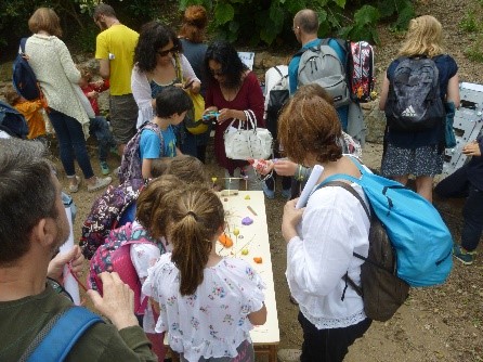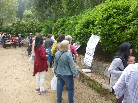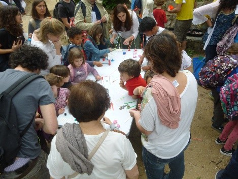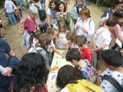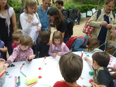 Per donar visibilitat del projecte als pares i mares de tota l’escola vam decidir fer l’exposició al Parc. Estava formada per dues parts; una on hi constaven totes les activitats d’aquest projecte (elaboració i buidatge de l’enquesta, dibuixos dels elements que es volen afegir al parc, … i una segona, on es donava l’oportunitat a pares i alumnes de crear, amb material divers, possibles elements per integrar-los al Parc (tirolina, rocòdrom, tobogans, etc.), en miniatura.