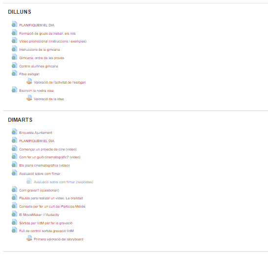 Per tal de poder realitzar i coordinar tot aquest munt de rúbriques entre els alumnes i tots els professors que intervindran en el Treball de Síntesi les farem en el curs de moodle. D’aquesta manera tenim, per una banda, molt estalvi de paper, i per l’altre estalvi de feina ja que els resultats de les rúbriques ja queden memoritzats.
