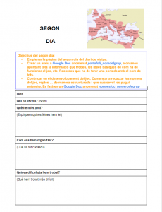 - Registre d’avaluació d’objectius assolits per sessió per part dels alumnes: per tal d’observar com ha anat l’assoliment dels objectius de cada sessió, es realitza una rúbrica d’avaluació del treball realitzat al “Diari del viatge” al final de cadascuna de les sessions.