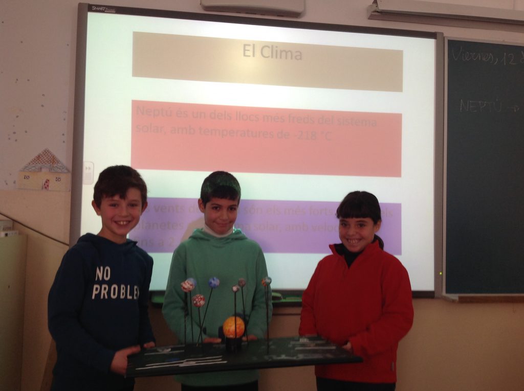 A partir d’aquí va sorgir la idea de treballar aquest tema dels planetes com a projecte. Va ser un treball cooperatiu, els alumnes triaven els grups i també el planeta a estudiar. Però hi havia uns planetes molt sol·licitats (Saturn) i en canvi d’altres gens (La Terra), amb la qual cosa, les mestres van tenir que intervenir i repartir equitativament els planetes a treballar.