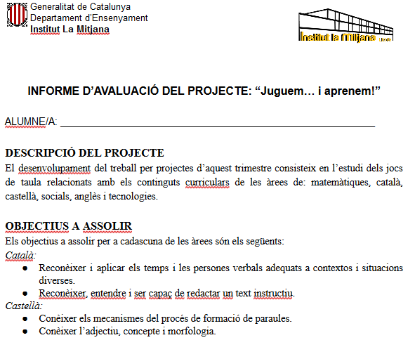 Amb aquests acords i els objectius de cada matèria, ja podem començar a donar-hi format al nostre inici de projectes.